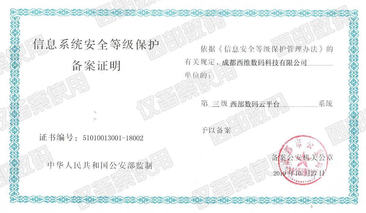 • 信息系統(tǒng)安全等級(jí)保護(hù)備案證明