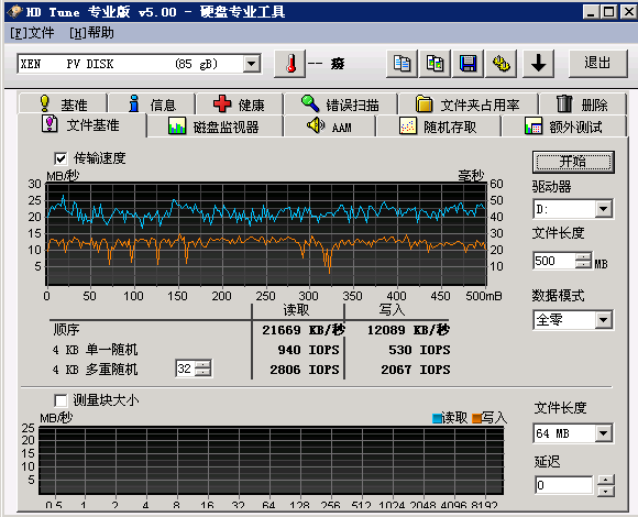 Tune專業(yè)版5.50”中的“文件基準(zhǔn)”功能可以測試 IOPS性能,一般以4K大小對應(yīng)的iops指標(biāo)做為參考: