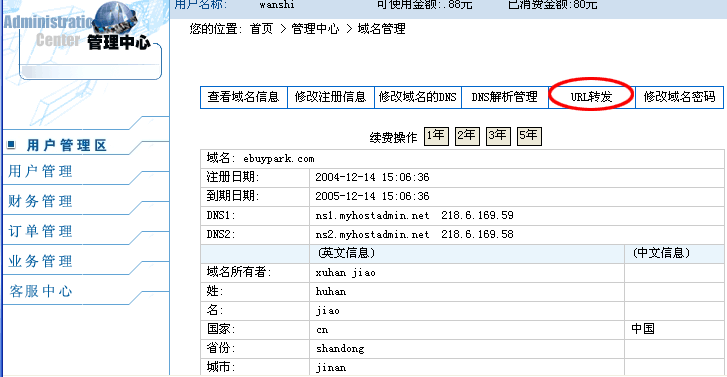 域名解析演示視頻 域名轉(zhuǎn)發(fā)演示視頻 URL轉(zhuǎn)發(fā)是指當(dāng)用戶在瀏覽器輸入某個(gè)域名時(shí),打開此域名對(duì)應(yīng)的另外一個(gè)網(wǎng)址.例如,將http://bbs.ebuypark.com轉(zhuǎn)發(fā)到http://www.ebuypark.com/bbs時(shí),用戶輸入bbs.ebuypark.com訪問(wèn)的實(shí)際是www.ebuypark.com/bbs的內(nèi)容. 轉(zhuǎn)發(fā)方式有兩種:隱藏與非隱藏,采用隱藏轉(zhuǎn)發(fā)時(shí),用戶在瀏覽器地址欄看到的是原來(lái)的域名,如上例,用戶輸入bbs.ebuypark.com時(shí)訪問(wèn)的雖是http://www.ebuypark.com/bbs的內(nèi)容,但瀏覽器地址欄顯示的還是"bbs.ebuypark.com",而采用非隱藏轉(zhuǎn)發(fā)時(shí),瀏覽器地址欄將顯示實(shí)際地址http://www.ebuypark.com/bbs. 我司注冊(cè)的域名支持隱藏與非隱藏轉(zhuǎn)發(fā),但隱藏轉(zhuǎn)發(fā)需要通過(guò)審核才能生效!