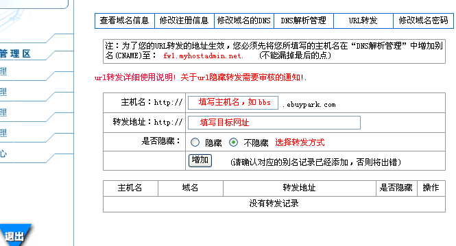 下面是在我司注冊(cè)的域名的轉(zhuǎn)發(fā)設(shè)置步驟
