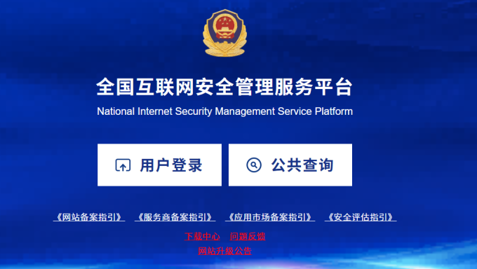 1.進(jìn)入全國(guó)互聯(lián)網(wǎng)安全管理服務(wù)平臺(tái):https://beian.mps.gov.cn/#/,單擊用戶登錄