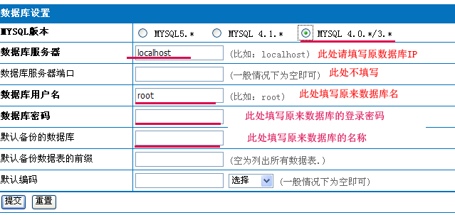 5.默認(rèn)備份的數(shù)據(jù)庫:填寫原MYSQL數(shù)據(jù)庫名。