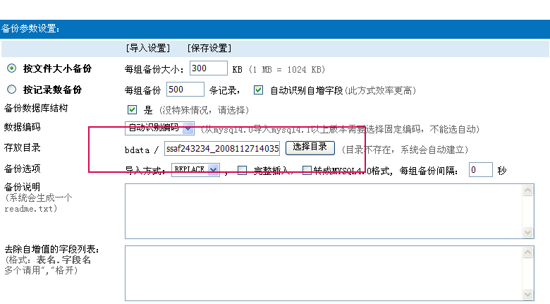 當(dāng)參數(shù)設(shè)置成功后,點(diǎn)擊“帝國備份”左側(cè)的“備份數(shù)據(jù)”,將會(huì)進(jìn)入“備份參數(shù)設(shè)置”頁,此時(shí)參數(shù)雖多,但幾乎您不需要更改任何東西,