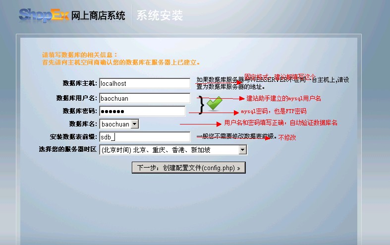 [原創(chuàng)]獨立主機、vps安裝shopex網(wǎng)店程序在我司VPS完整建立一個shopex網(wǎng)店,主要分為以下幾個步驟操作:一、VPS上建立站點和mysql》二、我司網(wǎng)站后臺提交白名單》三、下載程序安裝》四、安裝過程可能遇到的問題》五、shoex偽靜態(tài)設置。針對這五個步驟以下進行詳細介紹: 一、VPS上建立站點和mysql和二、我司網(wǎng)站后臺提交白名單。對于這兩步我公司已經(jīng)有詳細的介紹請看:http://www.youyuetrip.com/faq/list.asp?unid=448。需要注意的是白名單我司每天在10點、16點、21點時間導入防火墻,每次提交之后要等導入防火墻才能正常用域名訪問。 三、下載shopex程序安裝。遠程登陸服務器直接訪問http://www.shopex.cn/48release/選擇線路下載。解壓到對應主機目錄如下圖: 然后用域名/install訪問安裝,主要在填寫數(shù)據(jù)庫的地方要注意如下填寫: 四、安裝過程可能遇到的問題,主要是目錄權限問題,具體請看詳細說明:http://www.youyuetrip.com/faq/list.asp?unid=447 五、shopex偽靜態(tài)問題請看詳細說明:http://www.youyuetrip.com/faq/list.asp?unid=441 (注:此流程適合PHP+mysql的所有網(wǎng)站,比如常用的ecshop、discuz程序;其他程序除不建立mysql流程也完全一致)