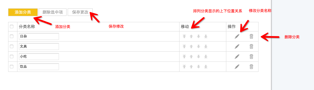 注意:篩選條件包括分類,名稱,產品價格,產品原價