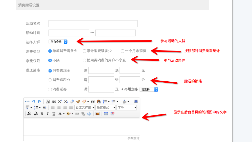 消費(fèi)贈(zèng)送是指當(dāng)消費(fèi)達(dá)到一定的水平時(shí)就會(huì)獲得獎(jiǎng)勵(lì) 2、添加消費(fèi)贈(zèng)送活動(dòng)