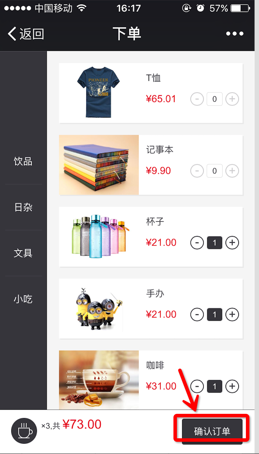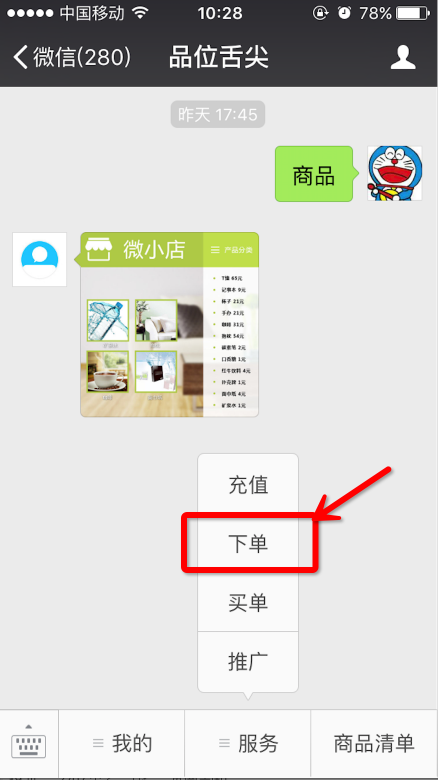 微小店應(yīng)用示例1、前臺下單進(jìn)入微信公眾號,點(diǎn)擊下單