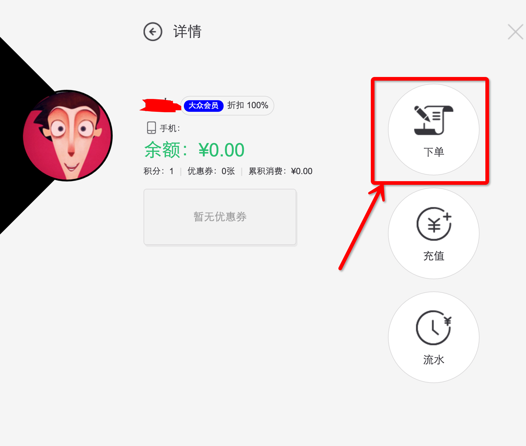 2、后臺下單首先獲取用戶信息,用戶可以通過告訴手機(jī)號的形式,也可以掃描二維碼 (1)通過手機(jī)號查找會員