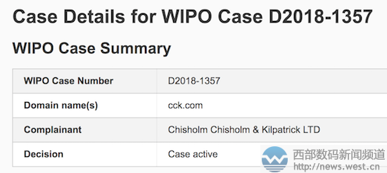 身價中六位數(shù)!國人持有的三聲母域名CCK.COM卷入仲裁!6月20日消息,據(jù)外媒domaininvesting報道,近日又一枚三聲母域名CCK.COM卷入了爭議域名仲裁。案件號為D2018-1357。