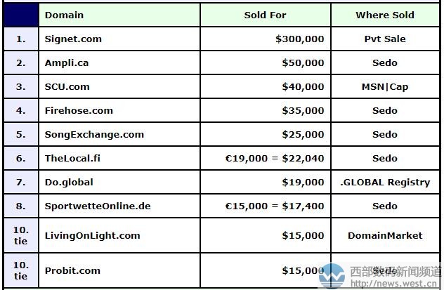 來(lái)源西部數(shù)碼新聞資訊,原文鏈接:DN榜:英文域名signet.com近200萬(wàn)元奪冠!國(guó)別域名表現(xiàn)不俗!