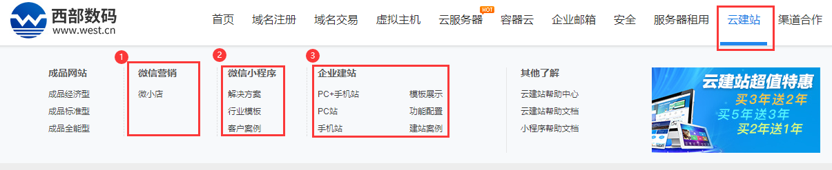 這里將云建站分為3大類,如圖:
