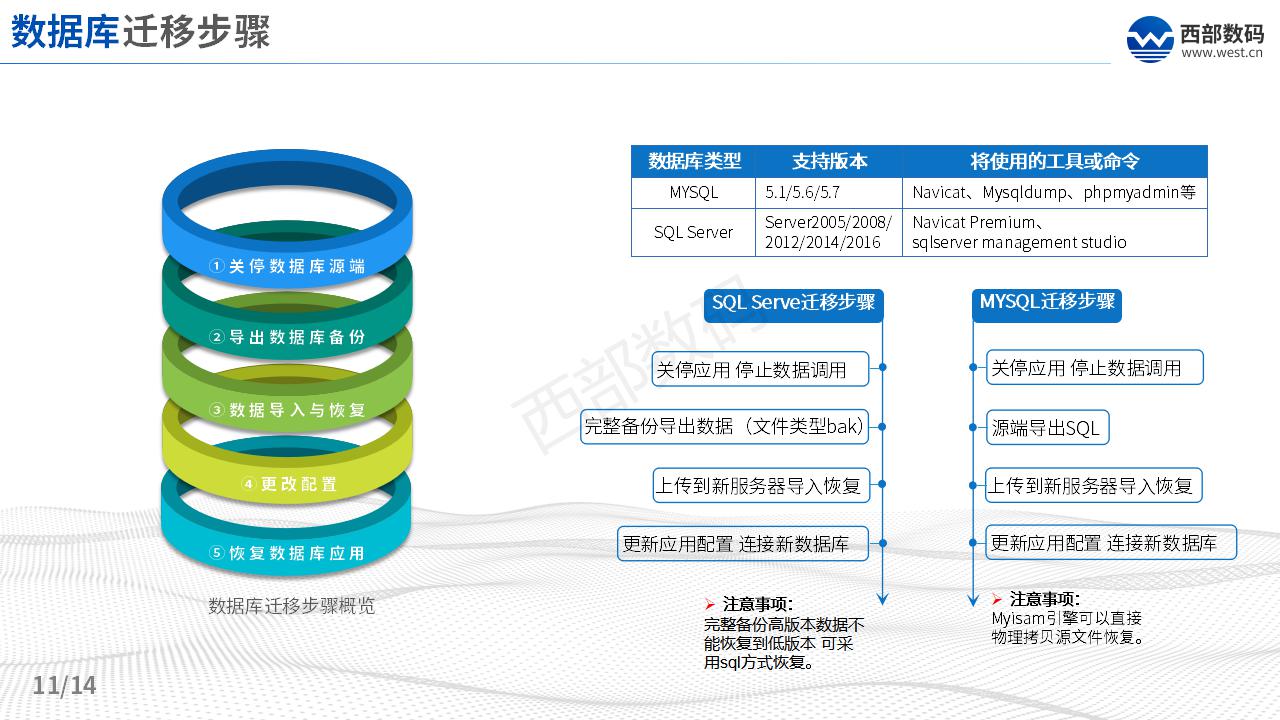 《服務遷移到西部數(shù)碼實踐方案》主要由四個部分組成;服務器上云、網(wǎng)站整體遷移、數(shù)據(jù)庫遷移和技術服務團隊介紹說明。