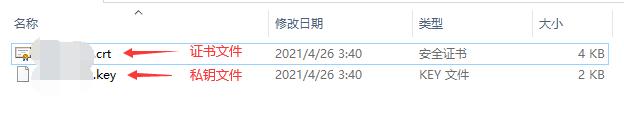 4.解壓后會(huì)得到兩個(gè)文件,.crt的是證書(shū)文件,.key的是私鑰文件。