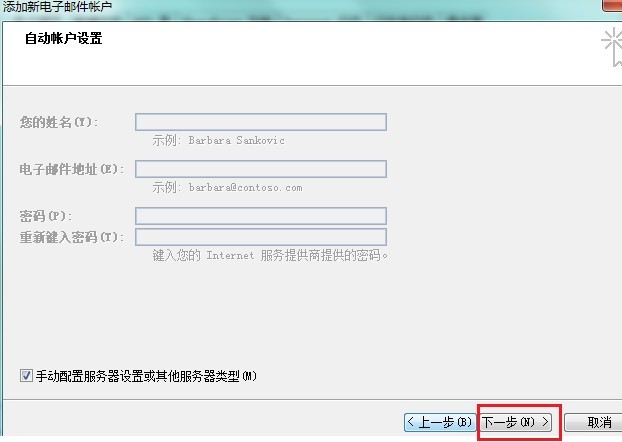 [原創(chuàng)]如何設(shè)置OUTLOOK2007來收發(fā)郵件1.打開OUTLOOK 2007界面如下: 2.選擇“工具”---“帳戶設(shè)置” 3.彈出的對話框如下:在“電子郵件”選項(xiàng)卡選擇----“新建” 4.在彈出的對話框中選擇如下圖所示,--------下一步 5.在這里選擇“手動配置服務(wù)器設(shè)置或其他服務(wù)器類型” 6.再下面配置具體郵局信息,填寫您相對應(yīng)的郵件地址/用戶名等信息: 7.下一步,選擇發(fā)送服務(wù)器,吧“我的發(fā)送服務(wù)器(smtp)要求驗(yàn)證”選中。 在這里確定完成即可。