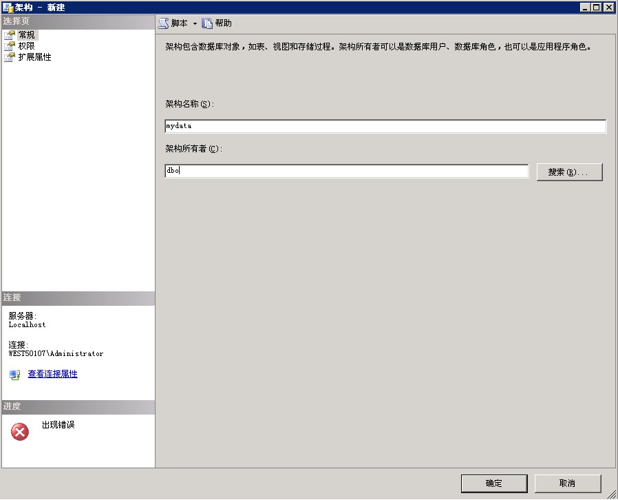 若是數(shù)據(jù)庫名或其他架構(gòu),如為mydata架構(gòu),需要在“安全性”——“架構(gòu)”,新建一個(gè)所有者為dbo的mydata架構(gòu)。