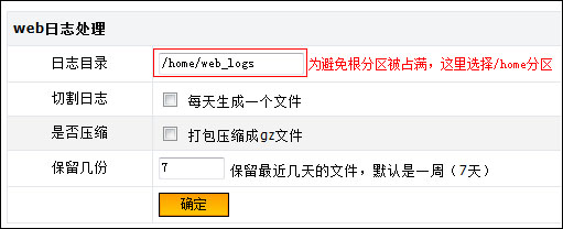 如果您站點較多,可以查詢是哪個網(wǎng)站導致流量過大,比較麻煩,流程如下: 系統(tǒng)默認沒有建立日志目錄,打開“系統(tǒng)設置”——“系統(tǒng)設置”,在“web日志處理”設置一個日志目錄,建議設置為/home/web_logs ,點擊確定。如圖: