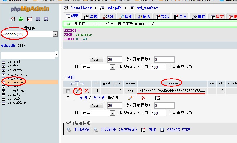 [原創(chuàng)]wdcp系統(tǒng)無法登錄忘記密碼我司有兩個版本,早些時候是1.1的版本,現(xiàn)在新安裝的都是2.x的版本,重置方法如下:登錄phpmyadmin在線管理mysql,在訪問地址后面加phpmyadmin就可以進行管理,賬號root,密碼是初始密碼(修改過root密碼請用修改后的密碼登錄),然后執(zhí)行以下sql語句,xxx請修改為自己需要的登錄密碼。use wdcpdb; |