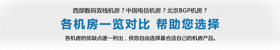 | 如果仍把握不準(zhǔn),不知道如何選擇哪個(gè)機(jī)房,請(qǐng)將您的需求信息(所在地區(qū)、上網(wǎng)方式、網(wǎng)站簡(jiǎn)要情況)發(fā)給在線客服,我們將為您人工推薦合適的機(jī)房! | |||||