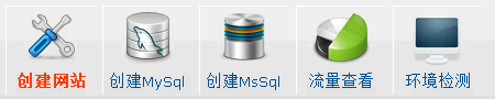 創(chuàng)建站點(diǎn):用于新建一個(gè)站點(diǎn) 創(chuàng)建mysql:用戶新建一個(gè)mysql數(shù)據(jù)庫,mysql名稱指:mysql用戶名和mysql數(shù)據(jù)庫名 編輯站點(diǎn):選擇一個(gè)站點(diǎn),點(diǎn)編輯站點(diǎn)可以對(duì)站點(diǎn)配置進(jìn)行編輯,如果原來創(chuàng)建了mysql的,取消“mysql已創(chuàng)建”的勾,將會(huì)刪除mysql數(shù)據(jù)庫! 重置密碼:用于重置一個(gè)或多個(gè)FTP密碼/mysql密碼的重置 流量統(tǒng)計(jì):用于統(tǒng)計(jì)IIS最后一次啟動(dòng)到當(dāng)前的總web收發(fā)和總http請求數(shù)。 重啟IIS:用于重啟IIS服務(wù)器
