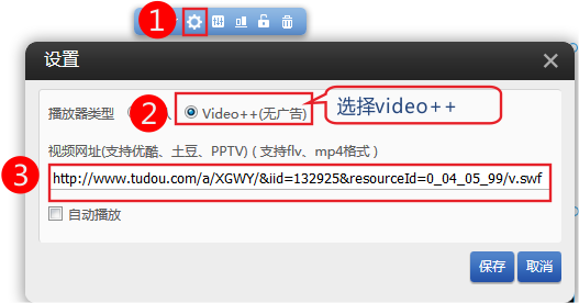 2,粘貼視頻播放地址-》保存。 您還可以設置視頻是否自動播放。