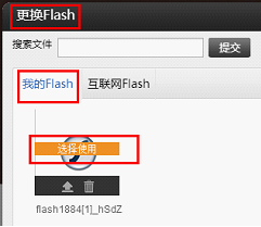 會彈出以下窗口“更換視頻”并打開文件夾中的Flash 選擇“我的Flash”和“互聯(lián)網(wǎng)Flash”, 點擊“我的Flash”并從文件夾中選定一個Flash文件,點擊“選擇使用”即可直接套用,保存后可預覽效果。如將來需要更換Flash,可以直接點“更換Flash”鍵操作。