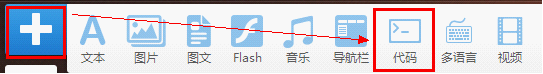 3)添加HTML代碼。如果您已有一段Flash的HTML代碼,就可以通過添加HTML代碼的方式去添加視頻。具體操作如下: 第一步:點擊左側的添加按鈕,然后找到代碼模塊: