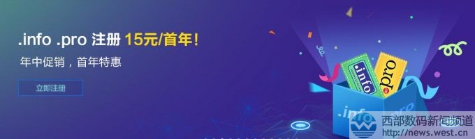 節(jié)省企業(yè)建站成本!西部數(shù)碼推出.info/.pro特價注冊活動西部數(shù)碼(west.cn)7月4日消息,繼上個月西部數(shù)碼推出云服務(wù)器優(yōu)惠升級活動,廣受好評后,為節(jié)省不同業(yè)務(wù)需求用戶的成本,近日西部數(shù)碼攜手Afilias注冊局又推出了.info/.pro域名特價活動。