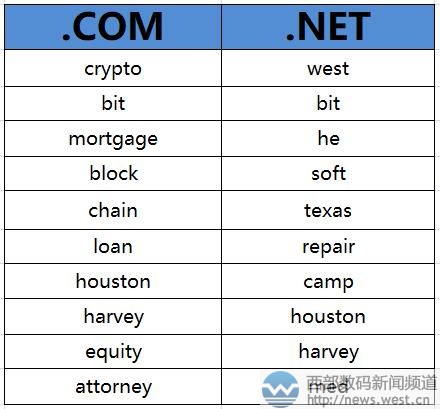 .com域名方面,單詞“crypto”(秘密的,加密的)排在第一。這個詞因與加密貨幣密切相關,今年以來曾多次成為十大熱門關鍵詞。據(jù)悉,就在5月和6月,“crypto”還分別登頂.com和.net域名熱門詞匯榜榜首。 接著是bit,代表有“比特”的意思,對應當前火得一塌糊涂的比特幣市場。今年以來,比特幣市場瘋狂發(fā)展,相關域名的行情也隨之暴漲。不僅有多個“比特幣”域名高價交易,也催生了大批用戶瘋狂搶注。 除此以外,區(qū)塊鏈的走紅也讓相關詞匯成了香餑餑。像block(塊)、chain(鏈)等詞均是8月份相當熱門的注冊詞。另外,兩個金融類詞匯“mortgage”(抵押)以及“l(fā)oan”(貸款)也再次上榜,根據(jù)以往的熱門詞榜單來看,這兩個單詞應該是.com和.net域名的長期熱門詞匯,很適合搭建相關金融平臺。 .net域名方面,8月份的最熱詞匯是west,是“西部,西邊”的意思。緊隨其后的仍然是“比特”單詞bit,這說明不管是.com還是.net域名,熱門行業(yè)始終牽絆著域名注冊者的神經(jīng)。 隨后,人稱代詞“he”(他)排在第二,也可作單拼,有“和”的意思,這個詞可與多個領域多個詞搭配,可應用的空間很大。另外,因受颶風襲擊而遭受巨大影響的美國城市休斯頓“houston”也成為了8月份熱門注冊詞。 本文轉(zhuǎn)載自新聞資訊,原文鏈接:威瑞信8月報:加密“crypto”又成最熱關鍵詞!“休斯頓”城市也榜上有名