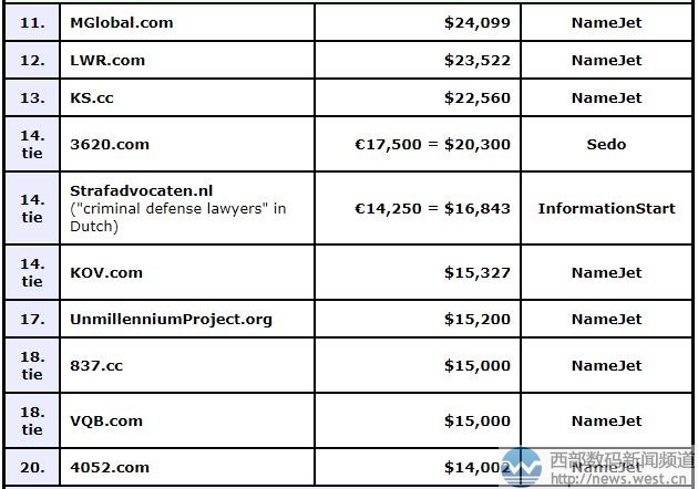 其他域名交易情況詳見下表: