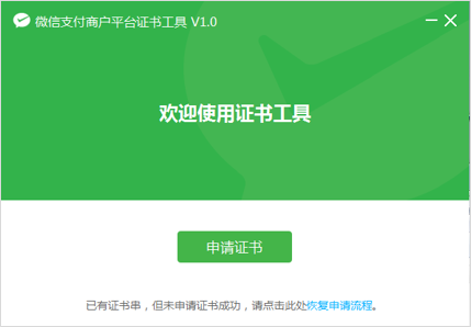 二、如何獲取API證書注意:獲取API證書需要商戶號的超級管理員才能操作 1、點擊API安全里的【申請證書】按鈕,并點擊下載去下載證書工具。 備注:也可直接訪問該鏈接 https://wx.gtimg.com/mch/files/WXCertUtil-1.0.zip 下載證書工具