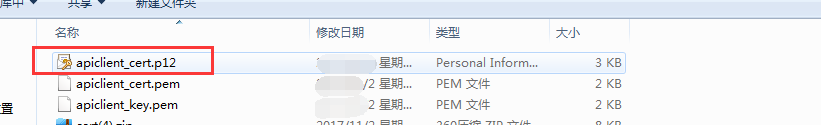 下載證書文件后,并解壓,后續(xù)需上傳“apiclient_cert.p12”如圖中所示資料到商城后臺