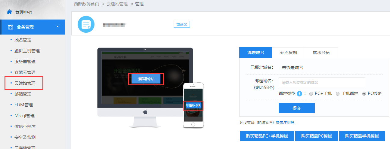 【云建站入手教程】6、云建站的基本操作和注意事項(xiàng)快捷導(dǎo)航: -------【云建站入手教程】-------- -------【云建站入手教程】-------- 1、進(jìn)入編輯的方式(有兩種) (1)方法一:請(qǐng)登錄會(huì)員中心,點(diǎn)擊業(yè)務(wù)管理中的云建站管理進(jìn)入。點(diǎn)擊編輯網(wǎng)站,默認(rèn)進(jìn)入前臺(tái)編輯界面