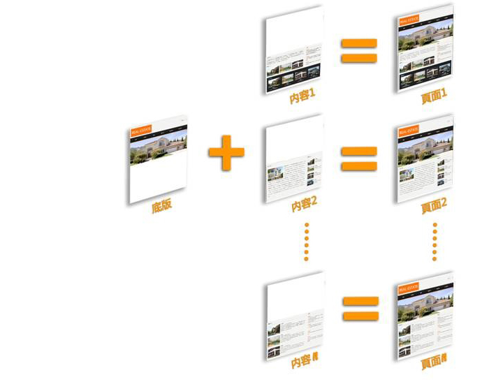 如下圖是底板和網(wǎng)站頁(yè)面組合的原理