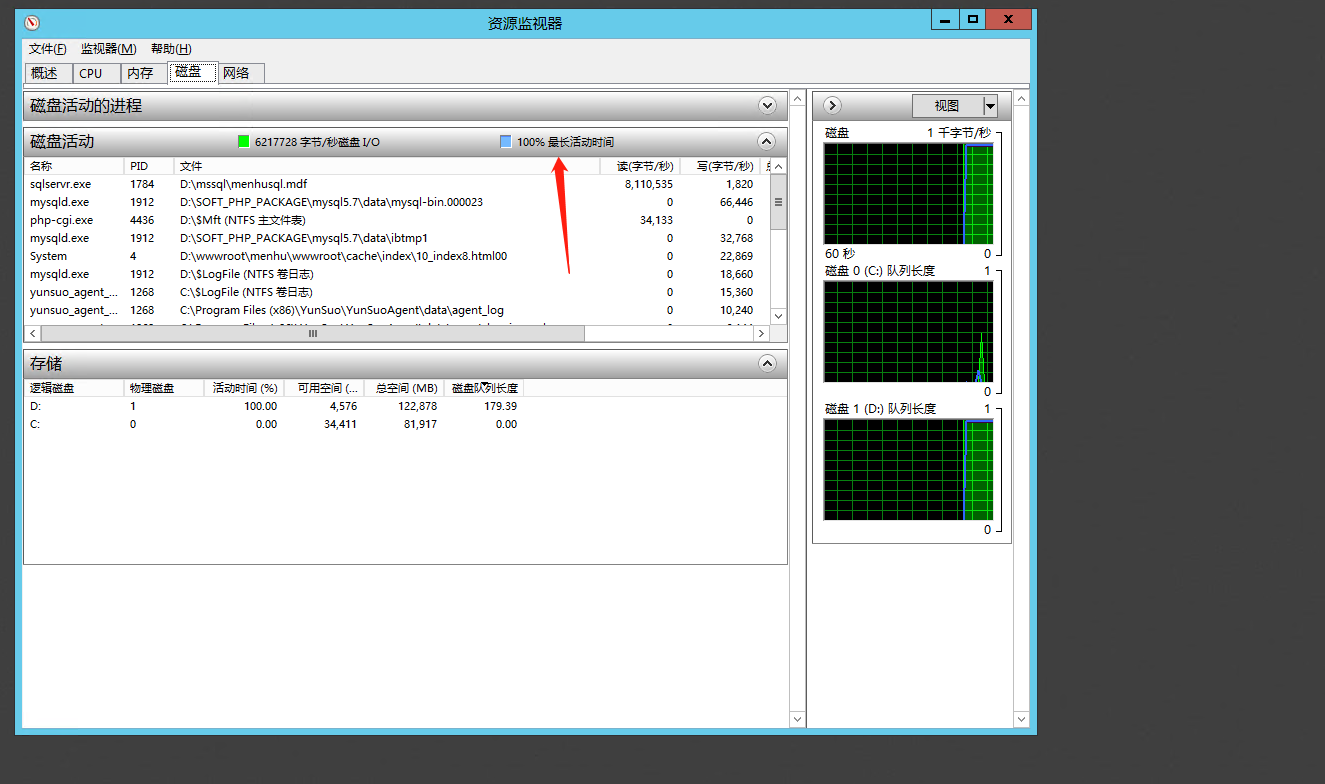 sql server profiler分析io/cpu占用以及建立索引優(yōu)化查詢1.首先通過資源監(jiān)視器可以看到讀寫較高的文件,找到對(duì)應(yīng)的數(shù)據(jù)庫名,如下圖 |