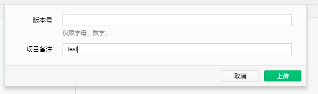上傳代碼包時(shí),需要填寫版本和項(xiàng)目備注,版本號(hào)可以根據(jù)實(shí)際需要填寫,建議與平臺(tái)版本號(hào)同步,項(xiàng)目備注可以填寫修改內(nèi)容
