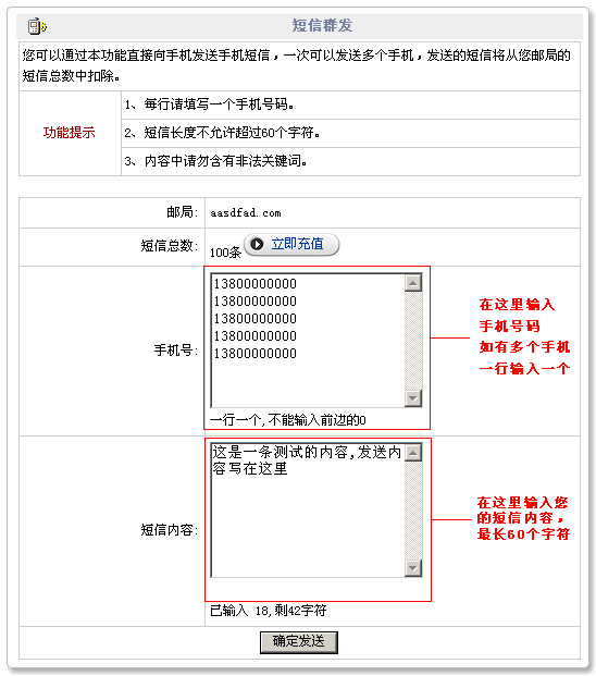 6. 企業(yè)短信快速發(fā)送: 可以登錄 http://www.myhostadmin.net ,選擇“郵件管理”,輸入域名和密碼登錄后即可直接群發(fā)短信,不用登錄西部數(shù)碼網(wǎng)站也可以發(fā)送! 7.我司為了方便用戶使用發(fā)布了短信群發(fā)工具,下載地址2012-2-7更新:http://youyuetrip.com/services/sms/sendsms.rar 8.開(kāi)發(fā)說(shuō)明文檔及示例下載地址(.net,php,asp) 2012-2-1更新 :http://youyuetrip.com/services/sms/west263sms_demo.rar