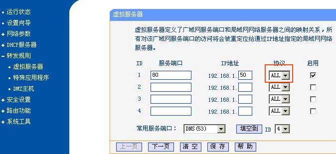 以架設(shè)web server為例:路由器內(nèi)網(wǎng)ip192.168.1.1,web server的內(nèi)網(wǎng)地址為192.168.1.50;