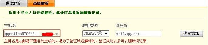 這個(gè)別名記錄是為了驗(yàn)證郵箱所有權(quán)用的,主機(jī)名就是您開通域名郵局驗(yàn)證那要求填寫的值。驗(yàn)證成功后可以刪除。
