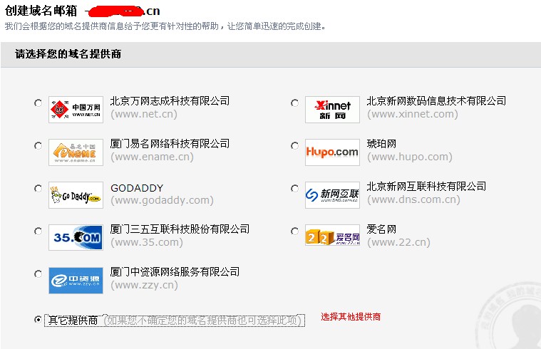 怎樣設(shè)置QQ域名郵箱解析QQ郵局推出了域名郵局,但是在設(shè)置上,與我司設(shè)置有些差異,現(xiàn)做下講解。 首先開通域名郵箱時(shí)會(huì)讓您選擇域名提供商,在我司的就選其他就可以了。