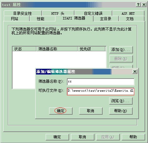 5.在isapi篩選器那里選擇加載Rewrite.dll