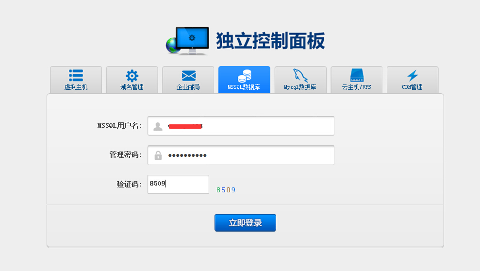 控制面板操作: 打開www.myhostadmin.net 輸入數(shù)據(jù)庫賬號密碼進(jìn)行登陸。